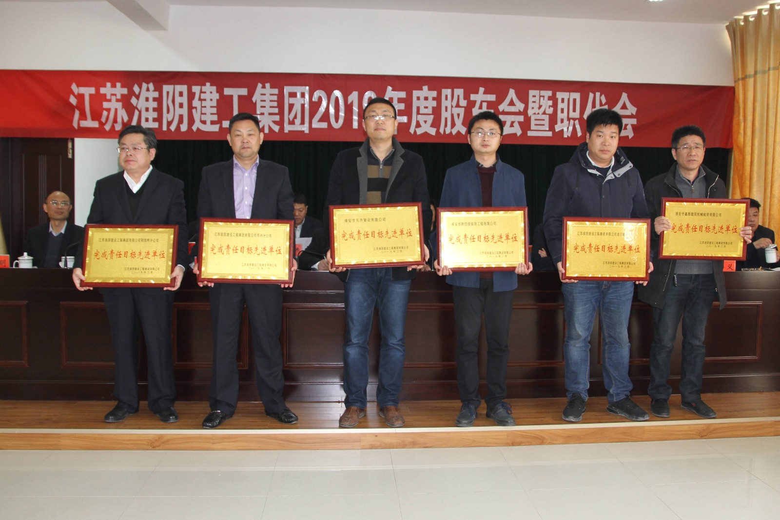 3月8日上午,集团2019年度股东会暨职代会胜利召开,集团公司股东、职工代表及特邀代表参加了会议,会议由李万祥常务副总主持。会上,李锦柱总经理作了行政工作报告,黄亚明主席作了监事会工作报告,吴彦生副总宣读表彰决定,对2018年度先进单位、先进部室、先进项目部及先进个人进行了表彰。经营部负责人及分、子公司经理向集团总经理递交了2019年度目标责任合同和安全责任状,五家单位和部室进行了表态发言。